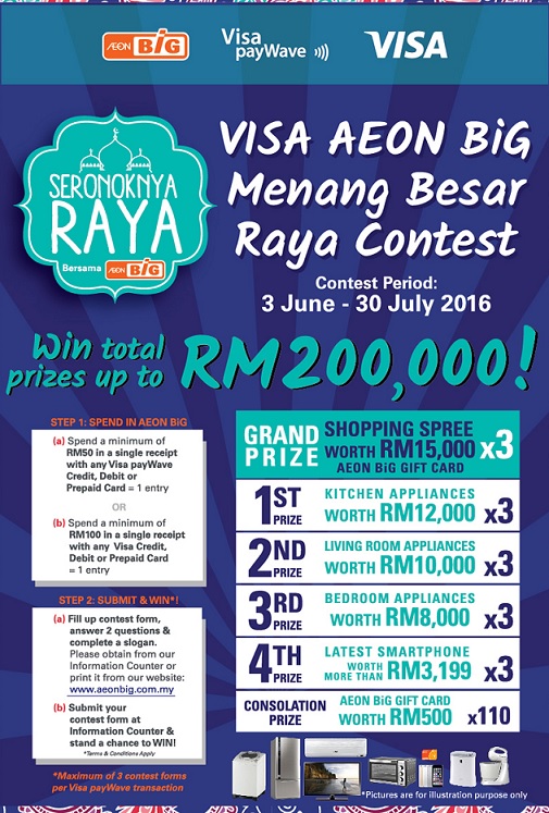All payment must be made through PB Visa Credit / Debit Card during the stipulated Contest Period at any AEON Big outlet